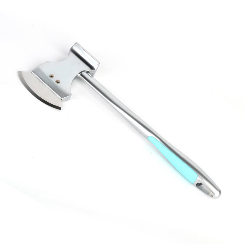 ဒီဇိုင်းအသစ်သွပ်သတ္တုစပ်အသားတင်ဒါနှင့်ပီဇာဖြတ်စက်နှစ်ခုလုံးအဖြစ်အသုံးပြုနိုင်သည့် all-in-one ကိရိယာသည် အရှည် 25 စင်တီမီတာရှိသည်။ ရှေ့စွန်းကိုလုပ်ဆောင်နိုင်သောမျက်နှာပြင်နှစ်ခုအဖြစ် ပိုင်းခြားထားသည်- အသားနုအတွက် တစ်မျိုးနှင့် ပီဇာလှီးစက်အတွက် အခြားတစ်ခုဖြစ်သည်။ လက်ကိုင်ကို အံဝင်ခွင်ကျပုံစံဖြင့် ဒီဇိုင်းထုတ်ထားပြီး လက်ကိုင်အနီးရှိ လက်ကိုင်အပိုင်းကိုလည်း အရွယ်ရောက်ပြီးသူအတွက် ABS နှင့် ထပ်ထည့်ထားသည်။ လက်ဖဝါးနာကျင်မှုကို လျော့ပါးစေပြီး ကြာရှည်အသုံးပြုနေစဉ်အတွင်း သက်တောင့်သက်သာဖြစ်စေရန် လက်ကိုင်၏အမြီး။